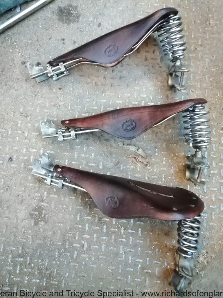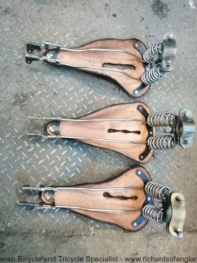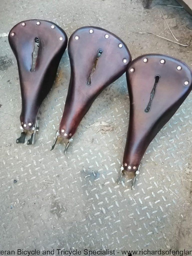 A comfortable saddle is an important part of any machine that is ridden any distance. The Richards of England reproduction saddle looks great on any machine and is much more comfortable than an early padded pan saddle.