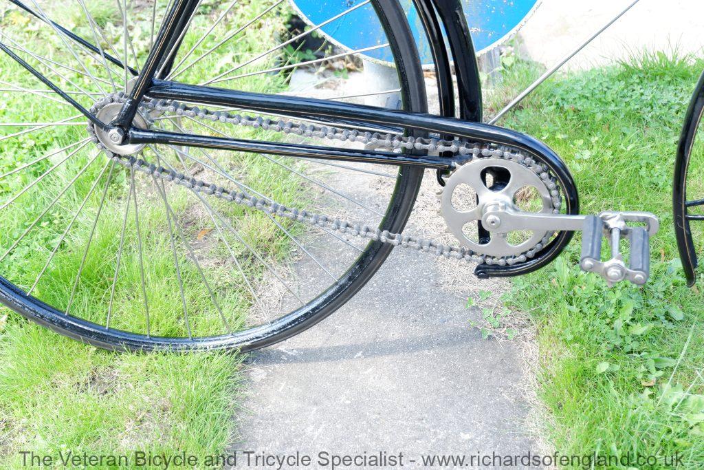 This Singer safety bicycle required quite a lot of work such as creating mudguards, chain guard, brake parts, foot rest rubbers, wooden handles, nickel plating, coach lining etc..